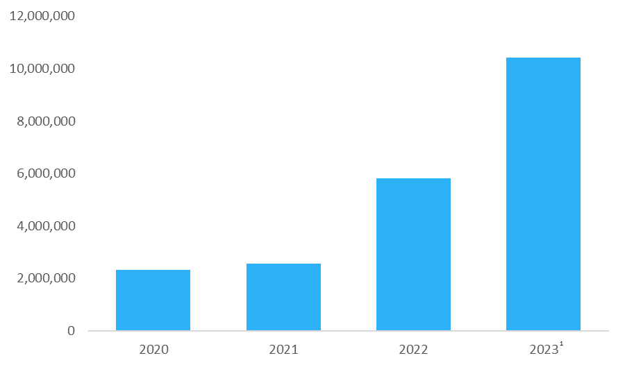 Since CEO Joined: Sales Quadrupled to $10M+¹ in 2023 over $2.6M in 2021